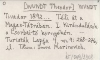 WUNDT J. [WUNDT Th.] 1885 Húsvéti kirándulás a Magas Tátrába.