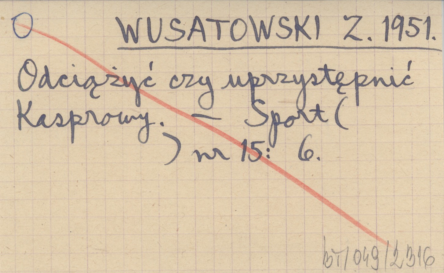 WUSATOWSKI Z. 1951 Odciążyć czy uprzystępnić Kasprowy.