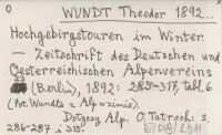 WUNDT Theodor 1892... Hochgebirgstouren im Winter.