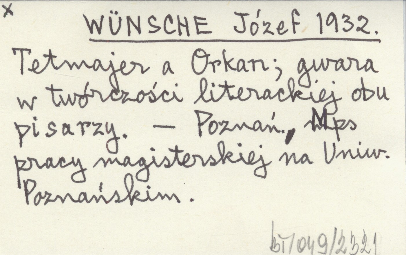 WÜNSCHE Józef 1932 Tetmajer a Orkan; gwara w twórczości literackiej obu pisarzy.