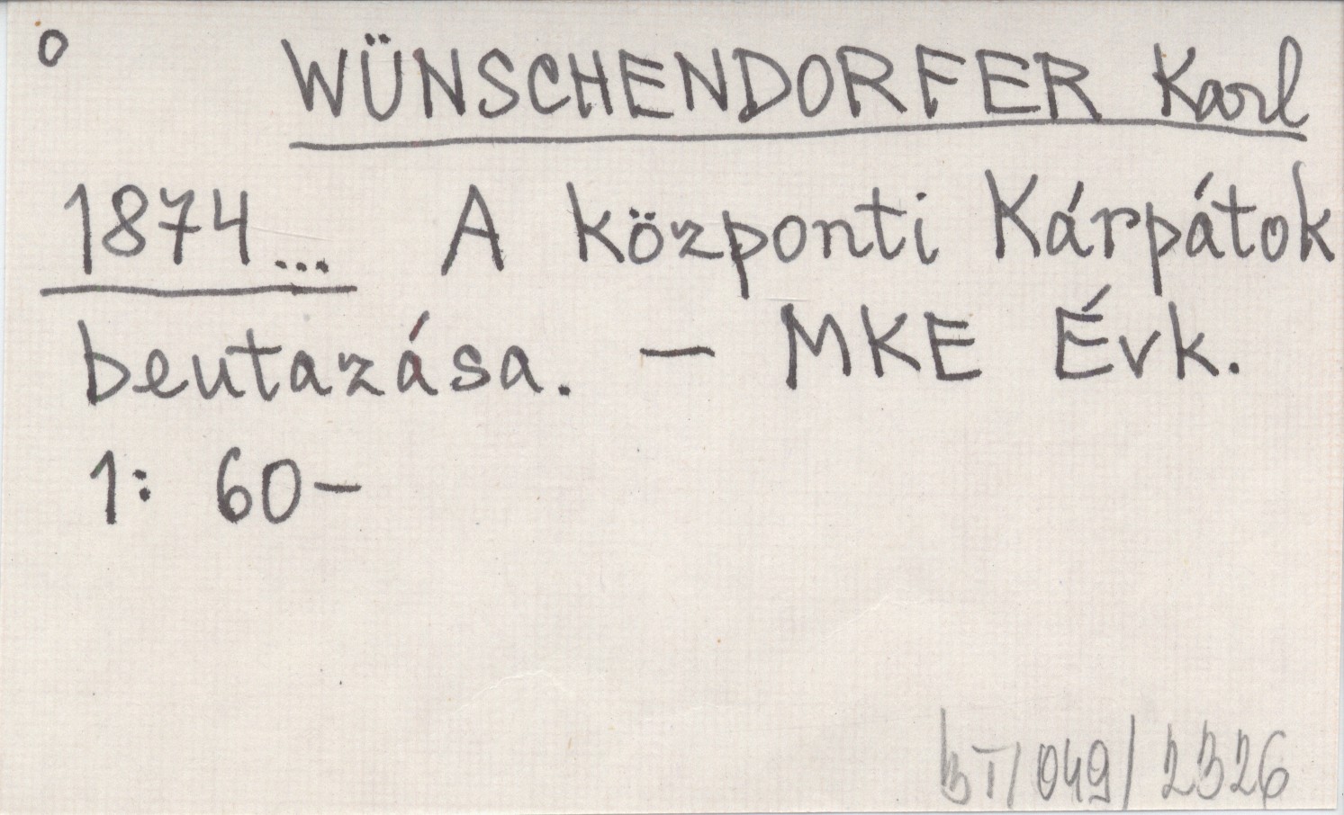 WÜNSCHENDORFER Karl 1874... A központi Kárpátok beutazása.