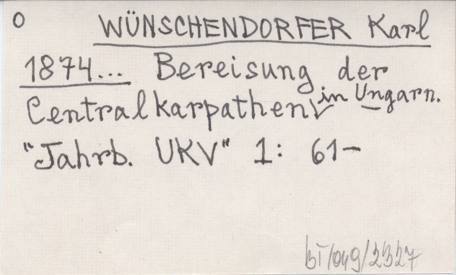 WÜNSCHENDORFER Karl 1874... Bereisung der Centralkarpathen in Ungarn.
