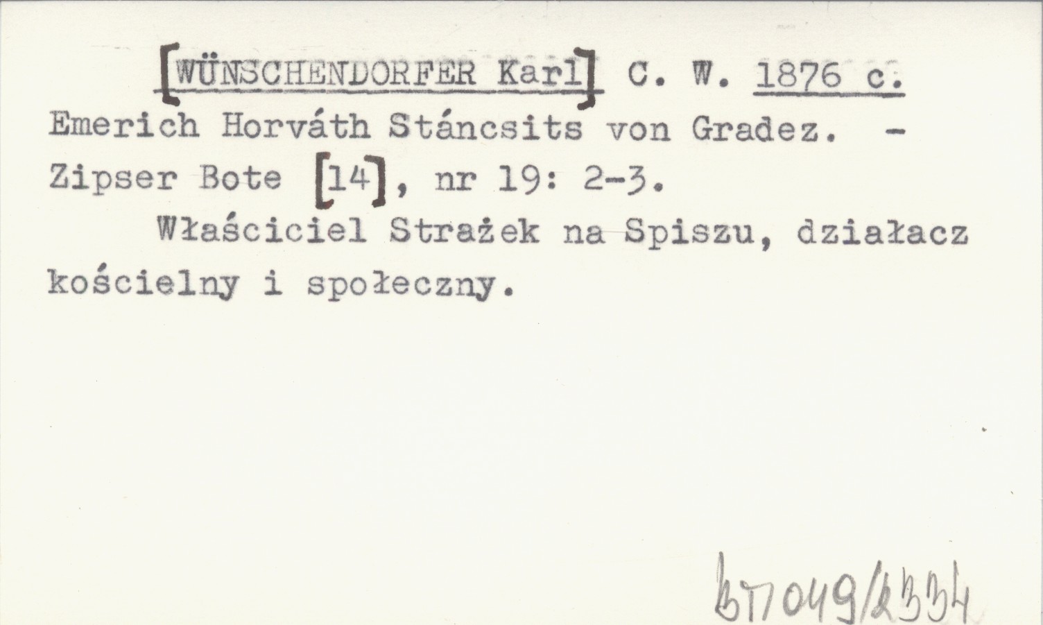 C. W. [WÜNSCHENDORFER Karl] 1876 c Emerich Horváth Stáncsits von Gradez.