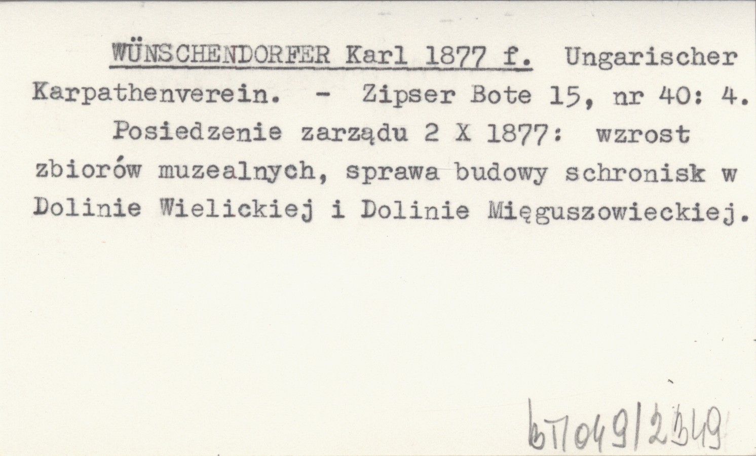WÜNSCHENDORFER Karl 1877 f Ungarischer Karpathenverein.
