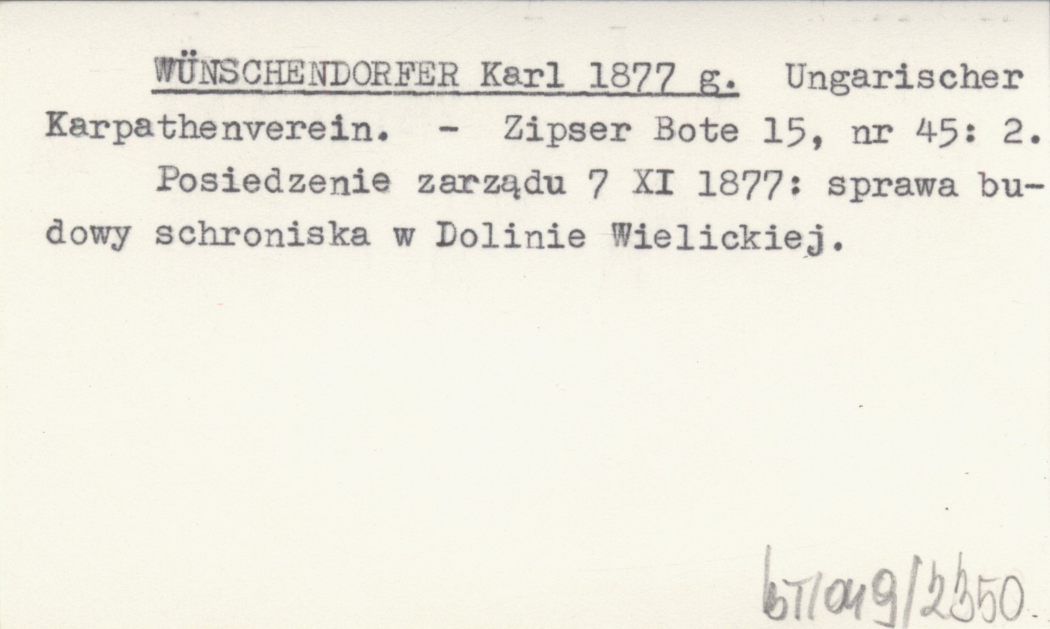 WÜNSCHENDORFER Karl 1877 g Ungarischer Karpathenverein.
