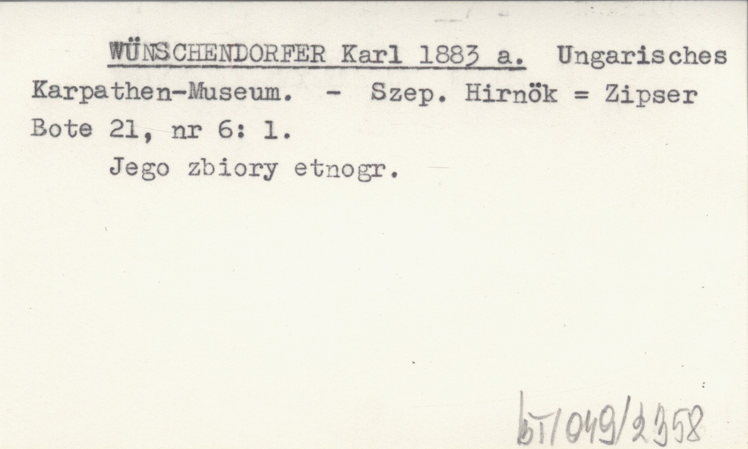 WÜNSCHENDORFER Karl 1883 a Ungarisches Karpathen-Museum.