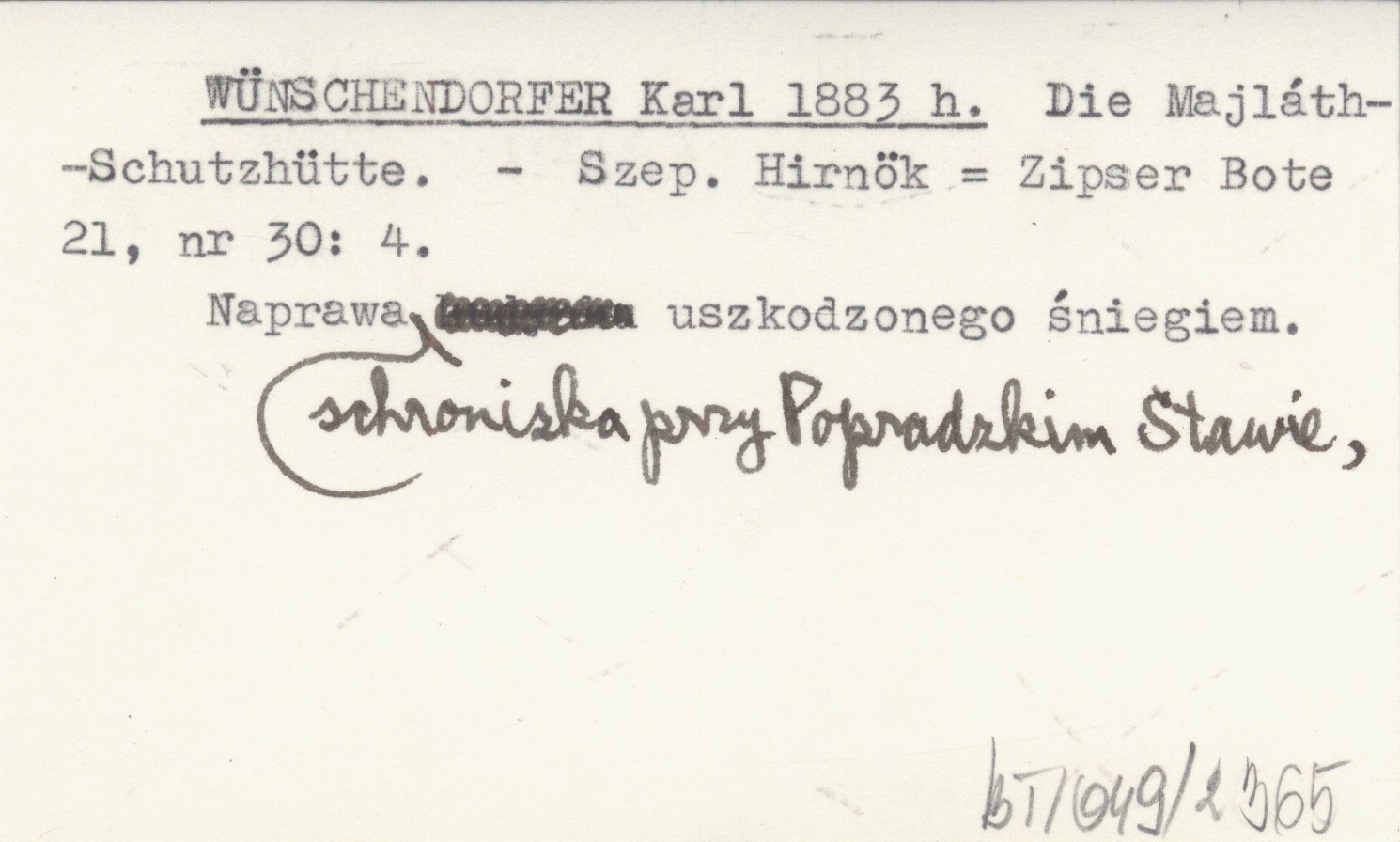 WÜNSCHENDORFER Karl 1883 h Die Majláth-Schutzhütte.