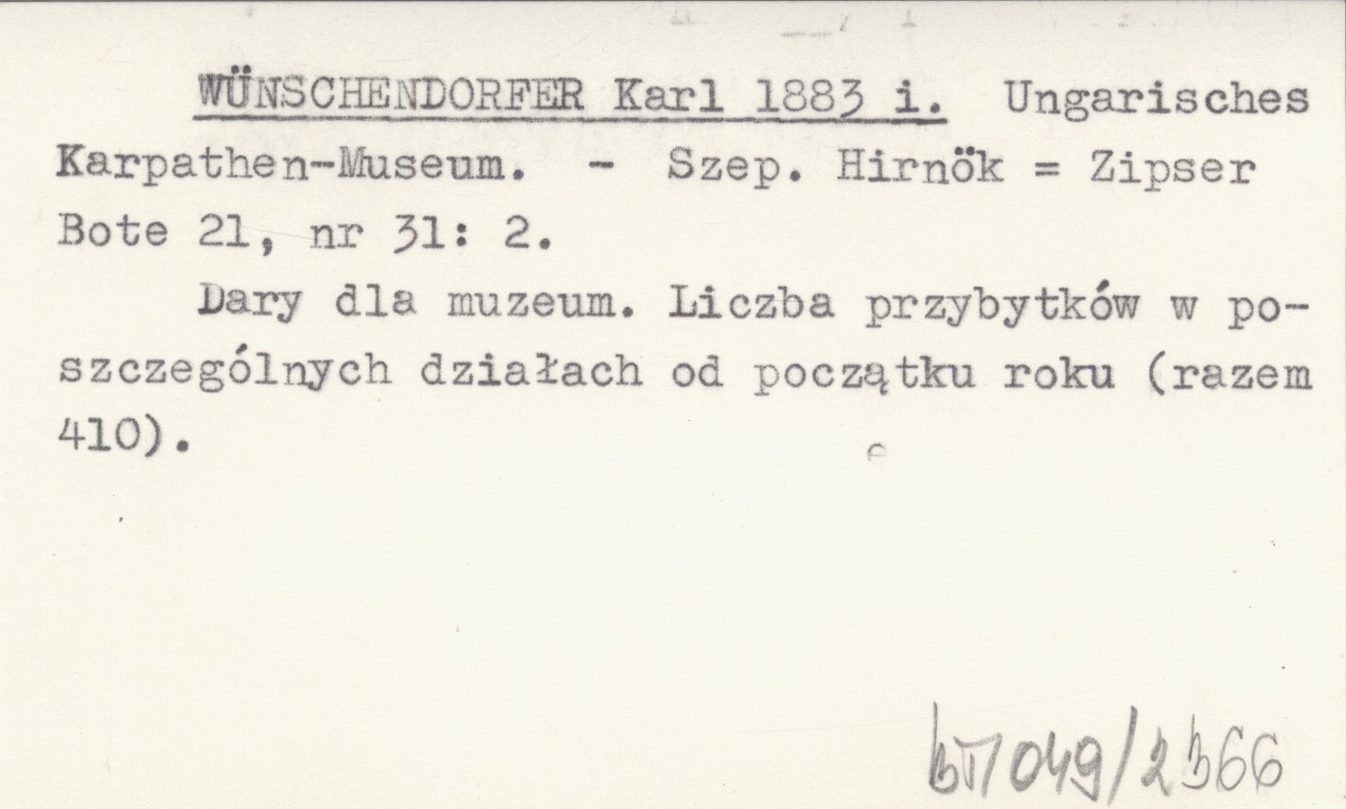 WÜNSCHENDORFER Karl 1883 i Ungarisches Karpathen-Museum.