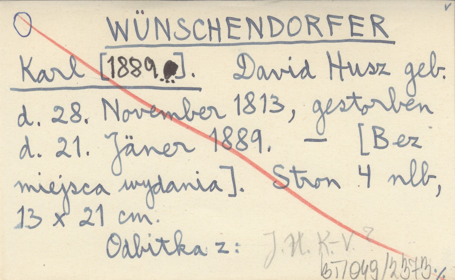 WÜNSCHENDORFER Karl [1889...] David Husz geb. d. 28. November 1813, gestorben d. 21. Jäner 1889.