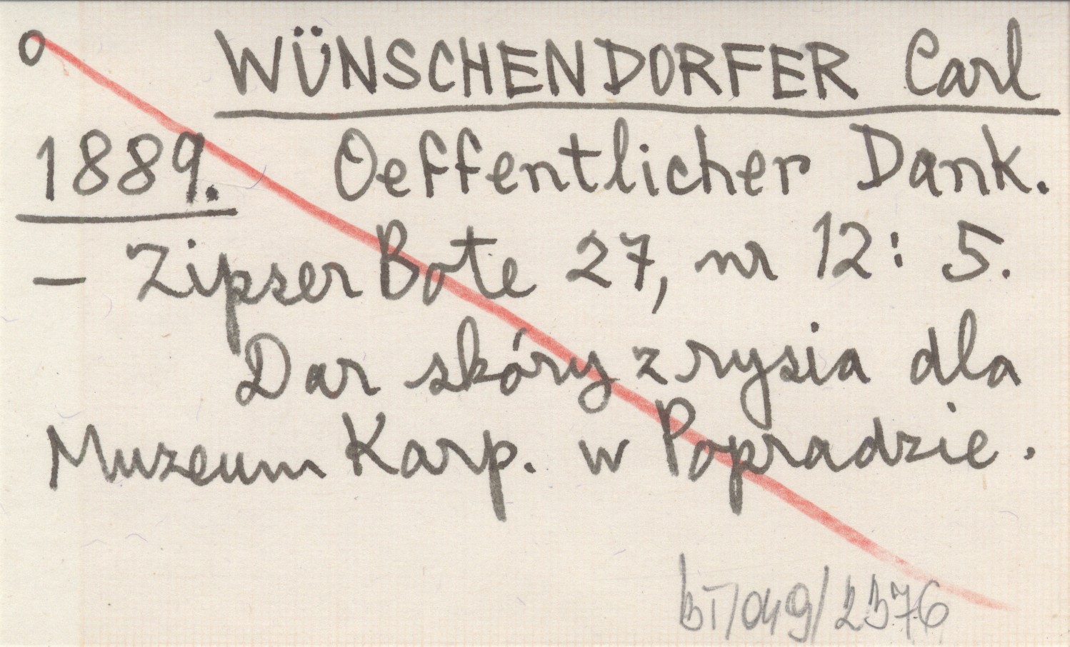 Zipser Bote, 27, nr 12: 5. Dar skóry z rysia dla Muzeum Karp. w Popradzie.