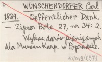 WÜNSCHENDORFER Carl 1889 Oeffentlicher Dank.