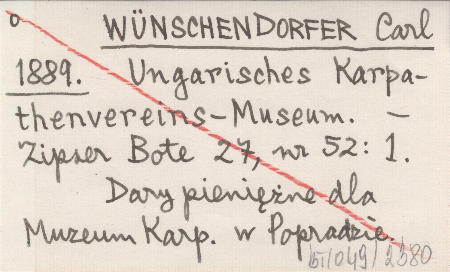 WÜNSCHENDORFER Carl 1889 Ungarisches Karpathenvereins-Museum.