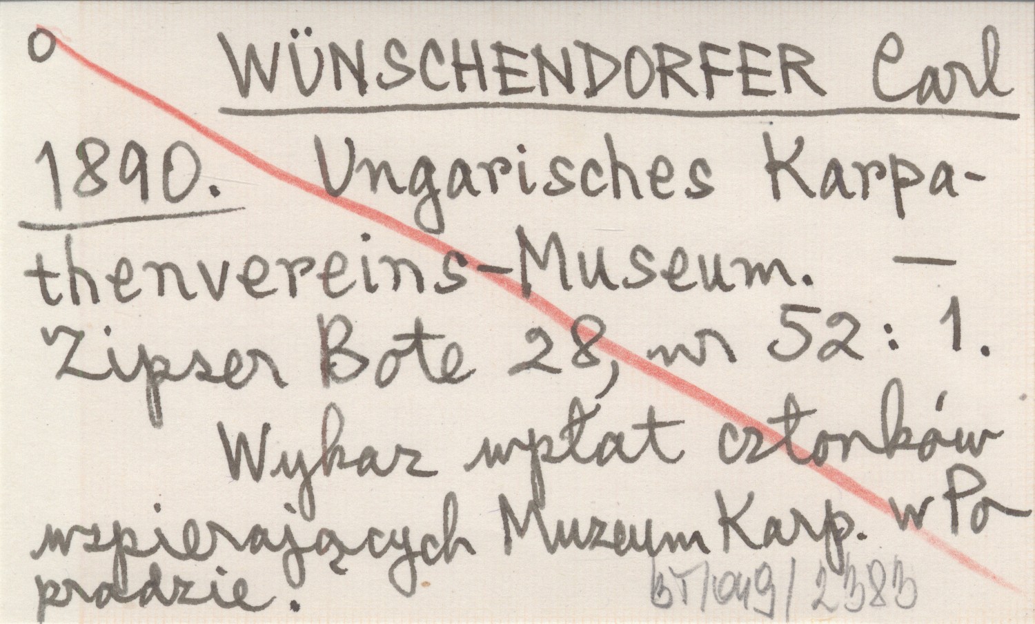 WÜNSCHENDORFER Carl 1890 Ungarisches Karpathenvereins-Museum.
