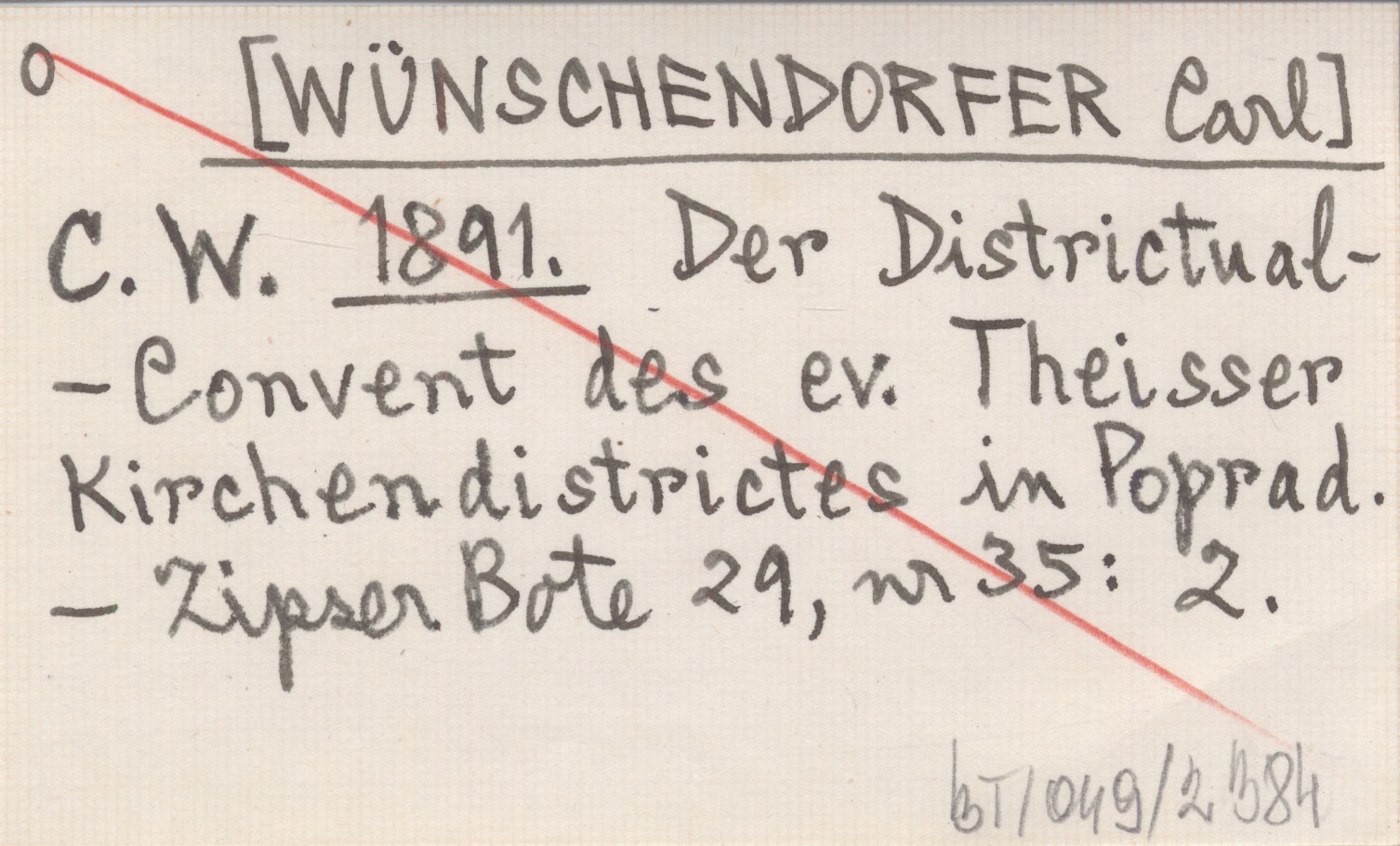 C. W. [WÜNSCHENDORFER Carl] 1891 Der Districtual-Convent des ev. Theisser Kirchendistrictes in Poprad.