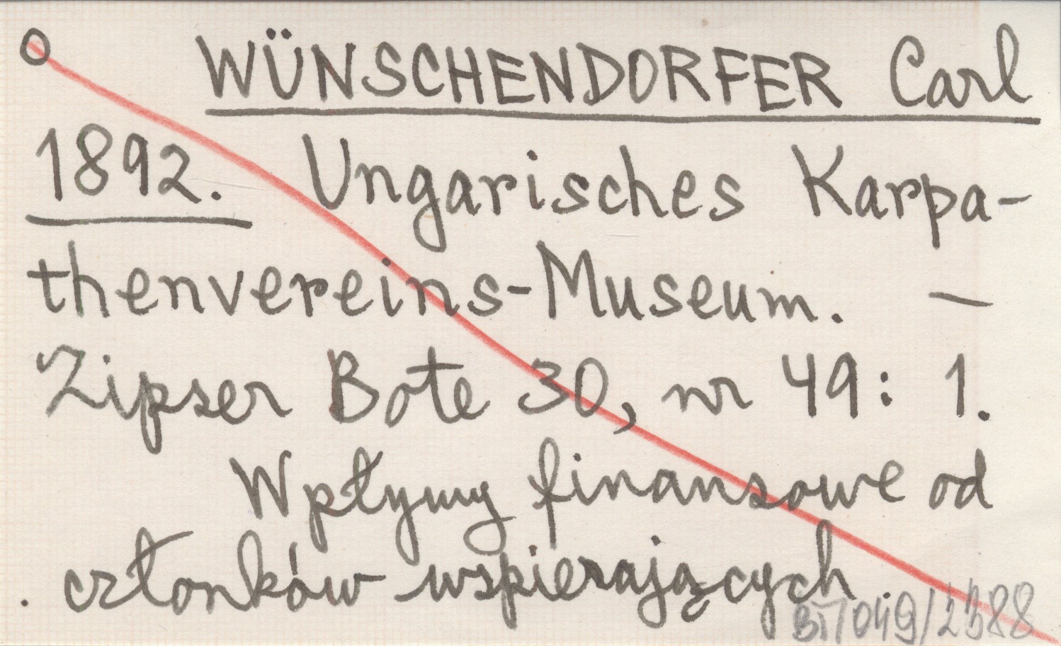 WÜNSCHENDORFER Carl 1892 Ungarisches Karpathenvereins-Museum.