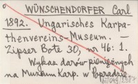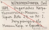 WÜNSCHENDORFER Carl 1892 Ungarisches Karpathenvereins-Museum.