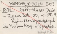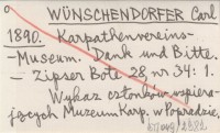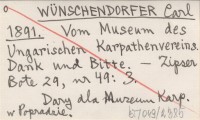 WÜNSCHENDORFER Carl 1891 Vom Museum des Ungarischen Karpathenvereins. Dank und Bitte.