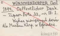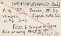 C. W. [WÜNSCHENDORFER Carl] 1894 Poprád, 15. November.