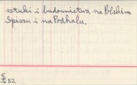 Przewodnik Naukowy i Literacki (Lwów) , 31, nr 5: 473-480 ; nr 6: 562-576 ; nr 7: 652-662. Na s. 565, 567, 568: zabytki sztuki i budownictwa na Polskim Spiszu i na Podhalu.