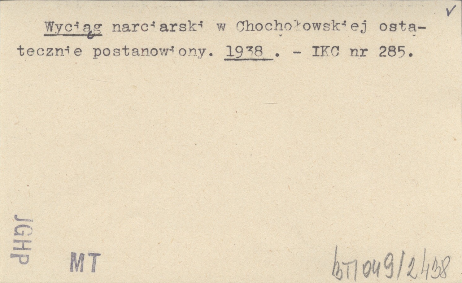 Wyciąg narciarski w Chochołowskiej ostatecznie postanowiony. 1938