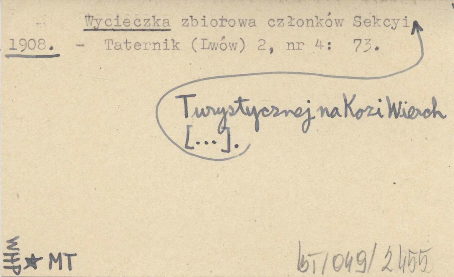 Wycieczka zbiorowa członków Sekcyi Turystycznej na Kozi Wierch [...]. 1908