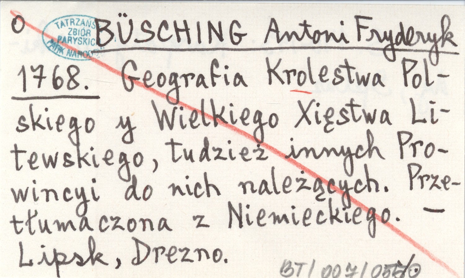 BÜSCHING Antoni Fryderyk 1768 Geografia Królestwa Polskiego y Wielkiego Xsięstwa Litewskiego, tudzież innych Prowincyi do nich należących. Przetłumaczona z Niemieckiego.