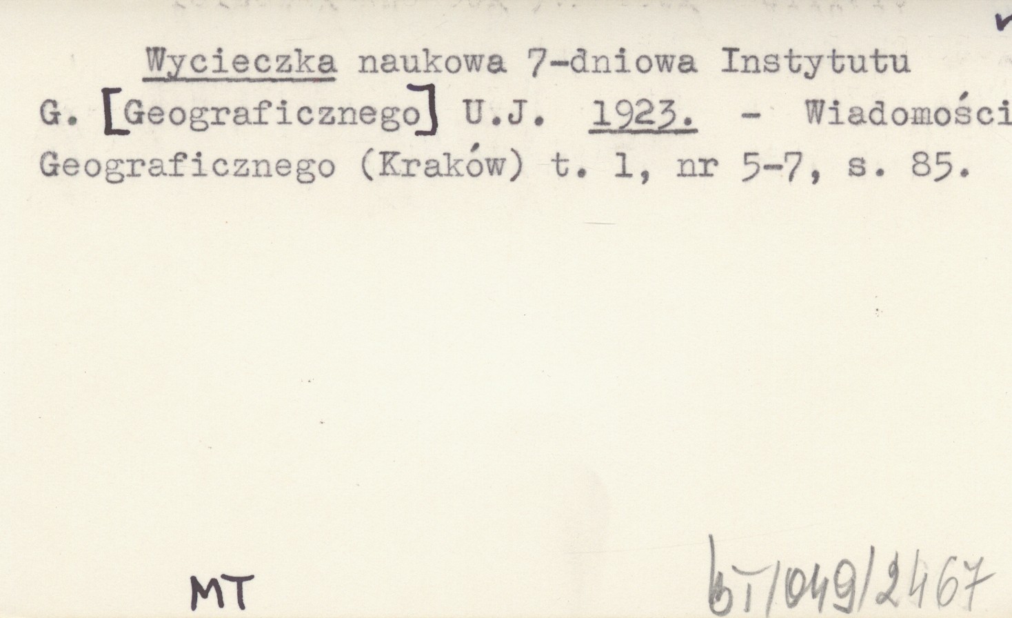 Wiadomości Geograficznego (Kraków) , T. 1, nr 5-7: 85.