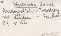 Wycieczka dzieci krakowskich w Twardoszynie. 1932...