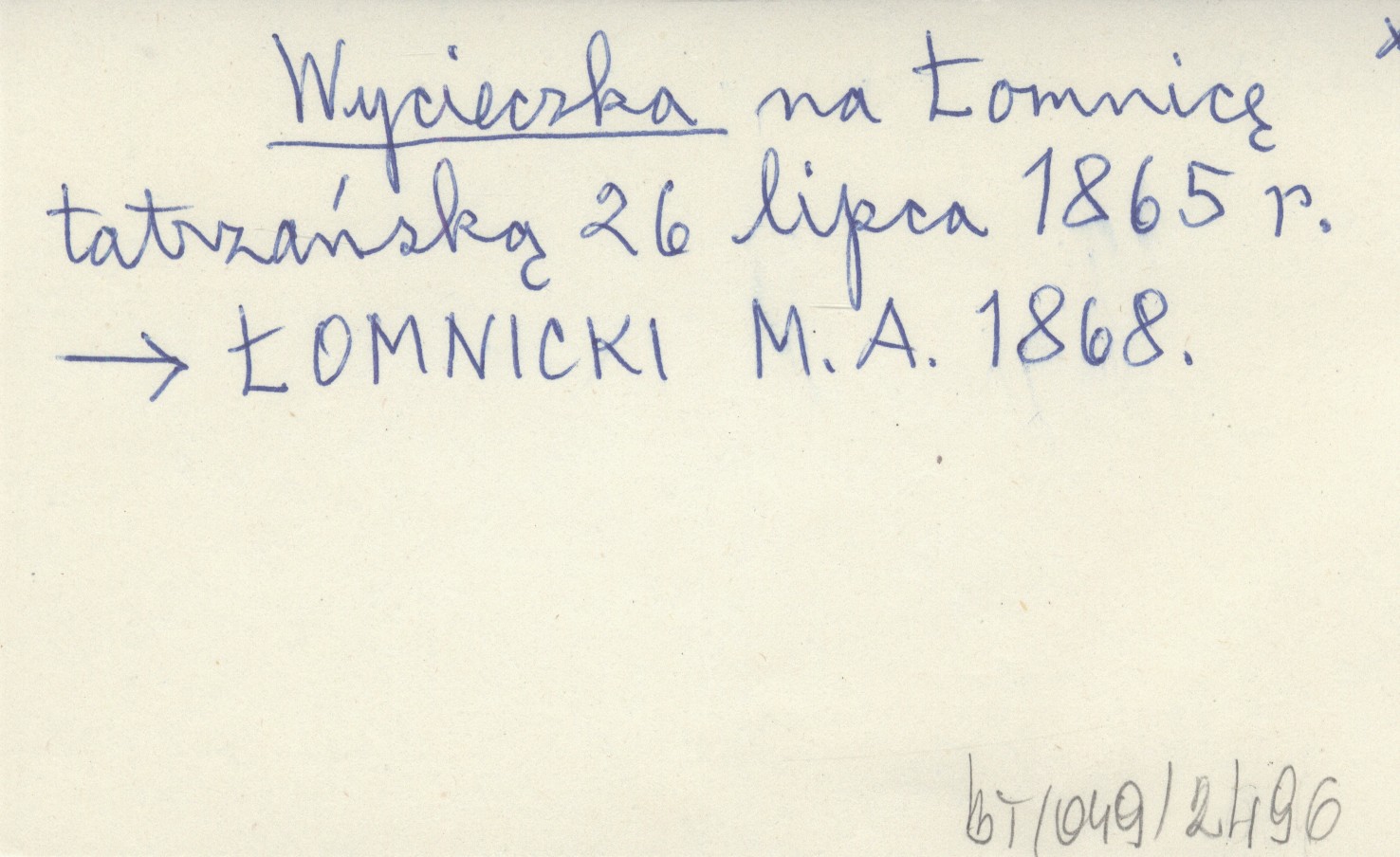 na Łomnicę tatrzańską 26 lipca 1865 r.
