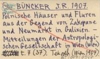 BÜNCKER J. R. 1907 Polnische Häuser und Fluren aus der Gegend von Zakopane und Neumarkt in Galizien.