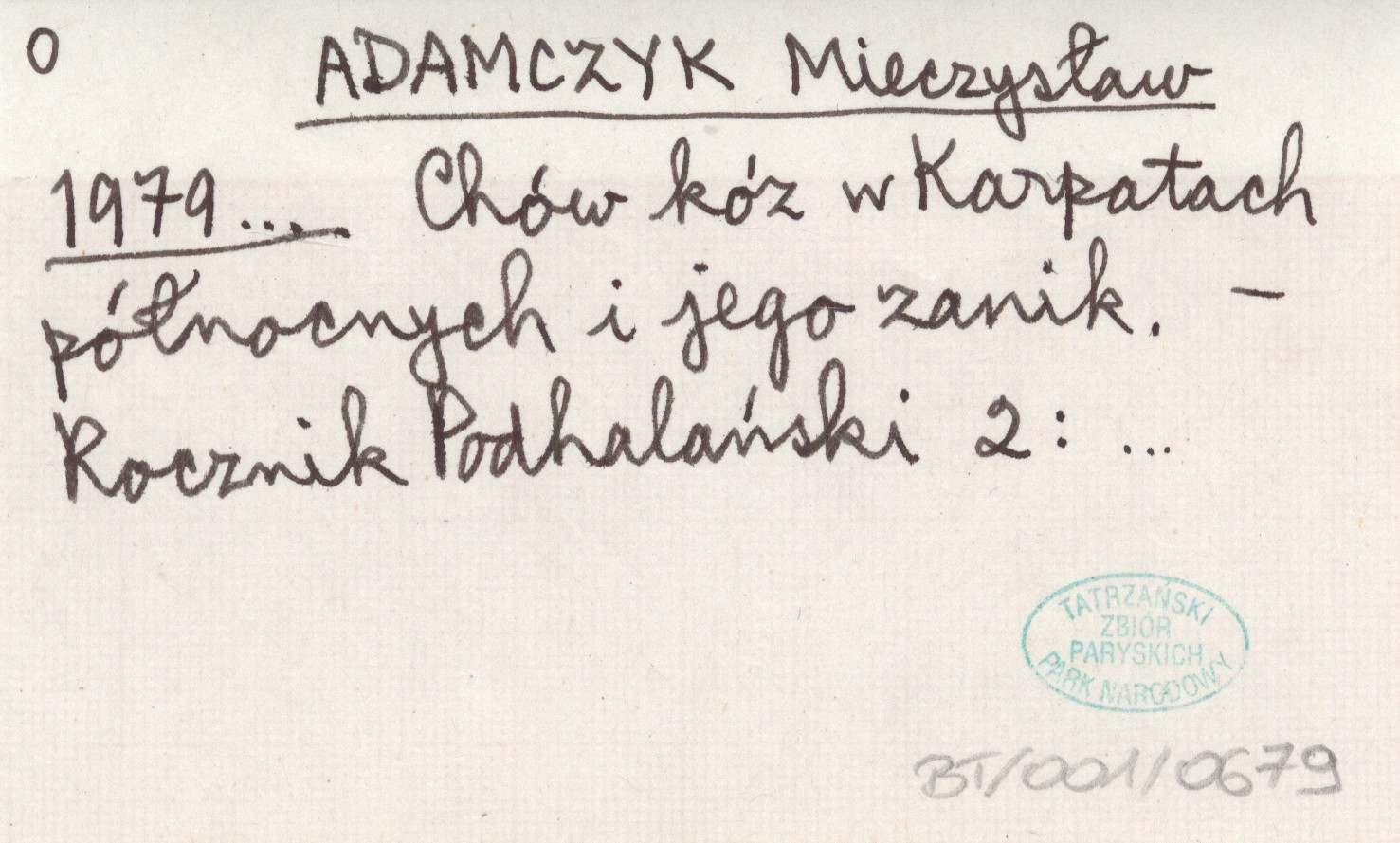 ADAMCZYK Mieczysław 1979... Chów kóz w Karpatach północnych i jego zanik.