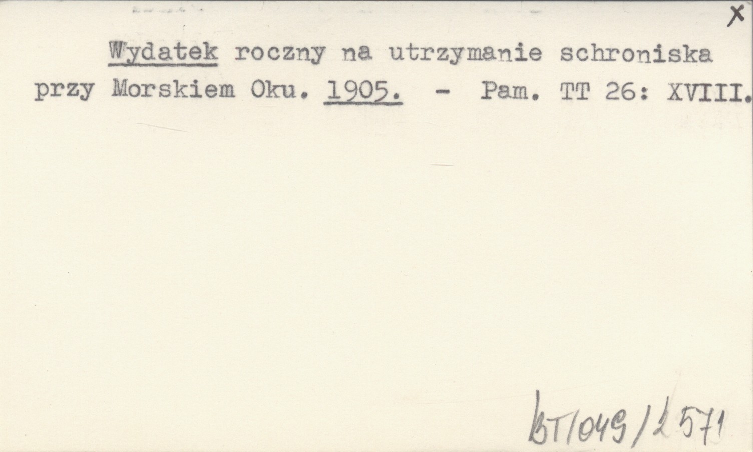 Wydatek roczny na utrzymanie schroniska przy Morskiem Oku. 1905
