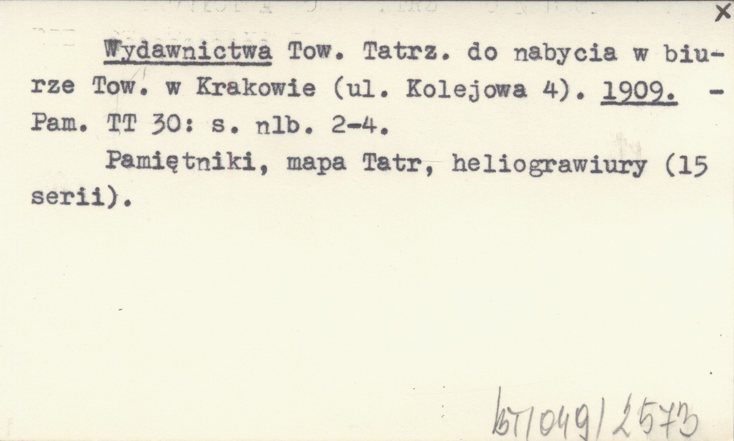 Tow. Tatrz. do nabycia w biurze Tow. w Krakowie (ul. Kolejowa 4).