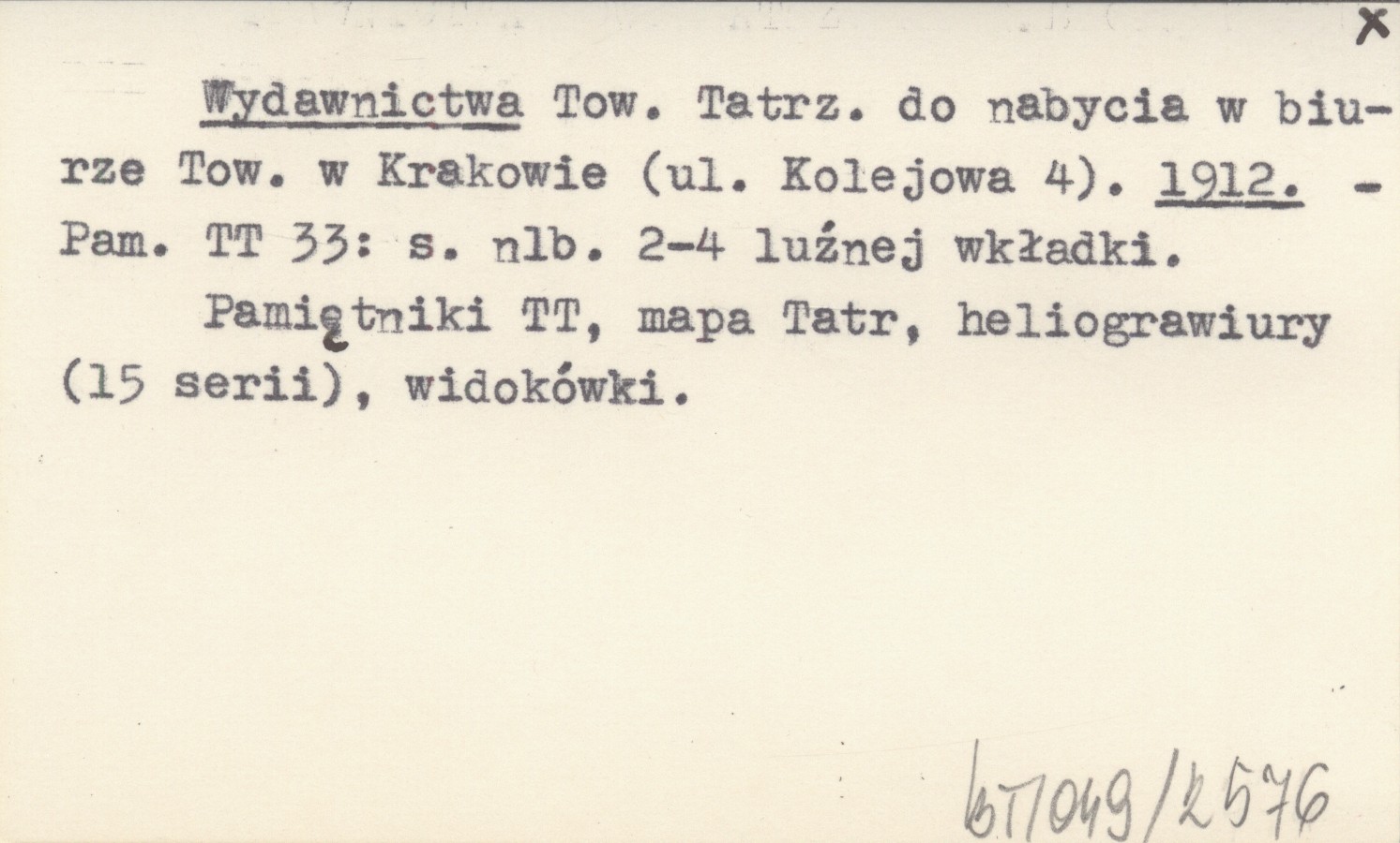 Tow. Tatrz. do nabycia w biurze Tow. w Krakowie (ul. Kolejowa 4).