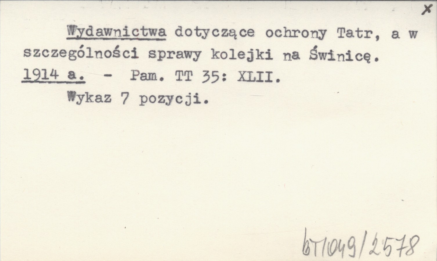 Pamiętnik Towarzystwa Tatrzańskiego, 35: XLII. Wykaz 7 pozycji.