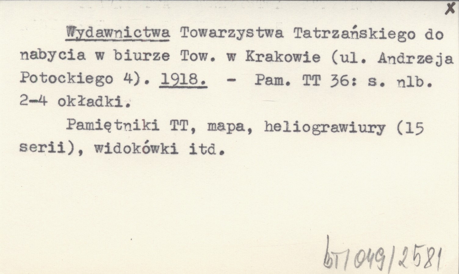 Wydawnictwa Towarzystwa Tatrzańskiego do nabycia w biurze Tow. w Krakowie (ul. Andrzeja Potockiego 4). 1918