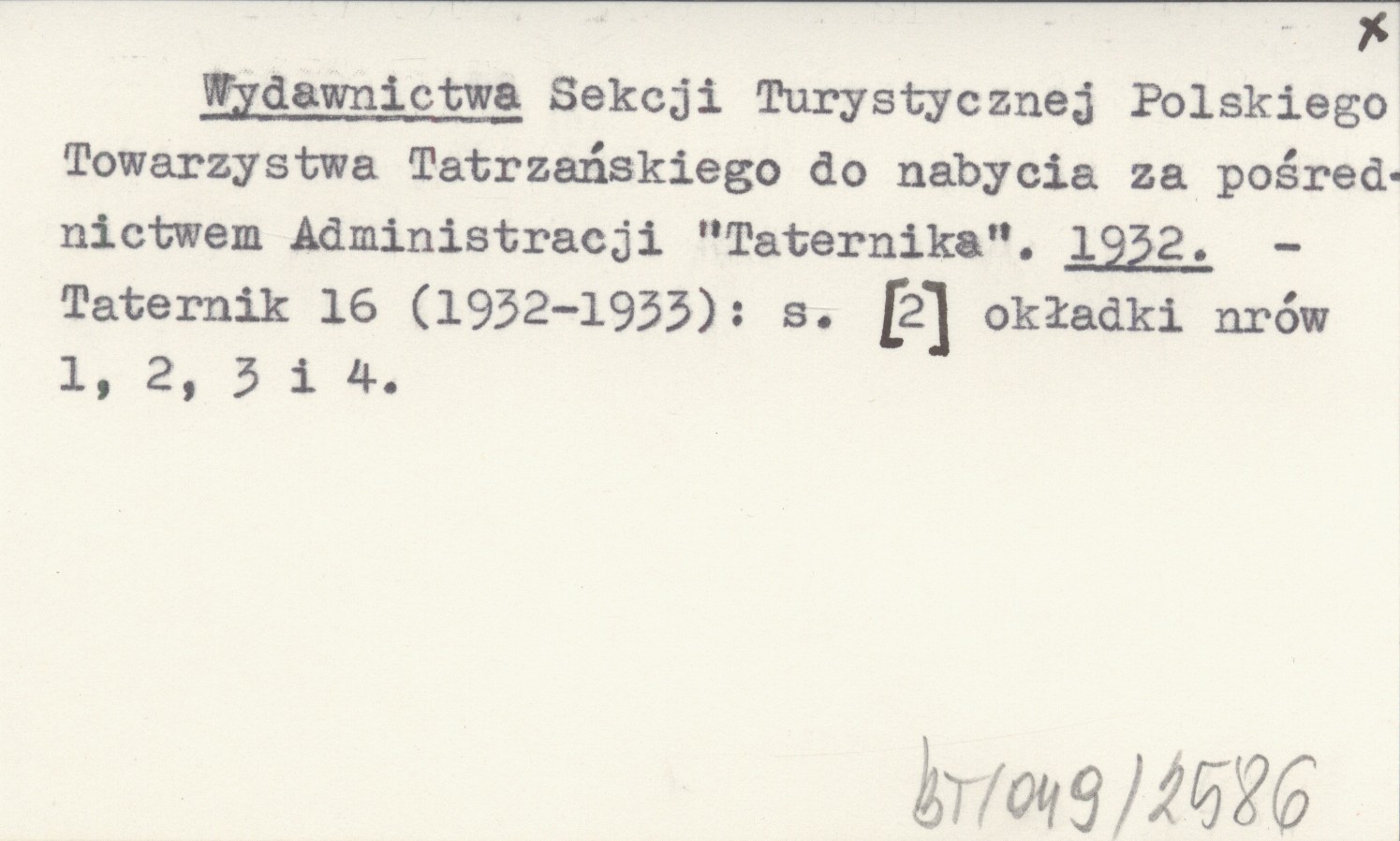 Taternik, 16 (1932-1933): [2] (okł. nr 1-4).