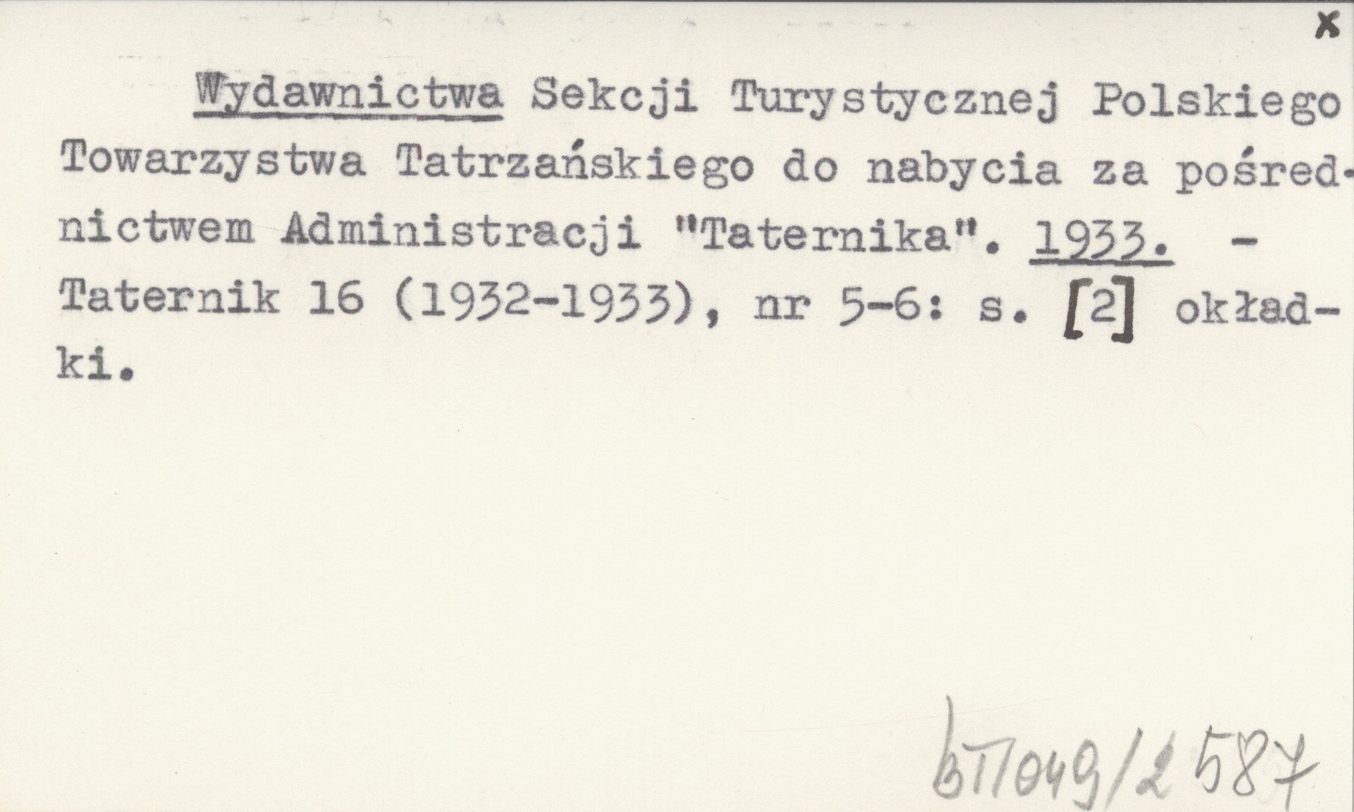 Wydawnictwa Sekcji Turystycznej Polskiego Towarzystwa Tatrzańskiego do nabycia za pośrednictwem Administracji "Taternika". 1933