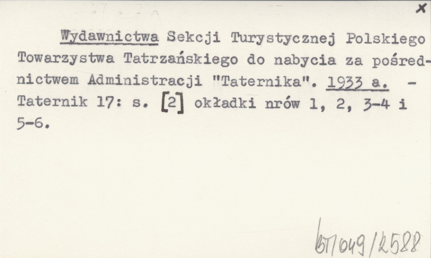 Wydawnictwa Sekcji Turystycznej Polskiego Towarzystwa Tatrzańskiego do nabycia za pośrednictwem Administracji "Taternika". 1933 a