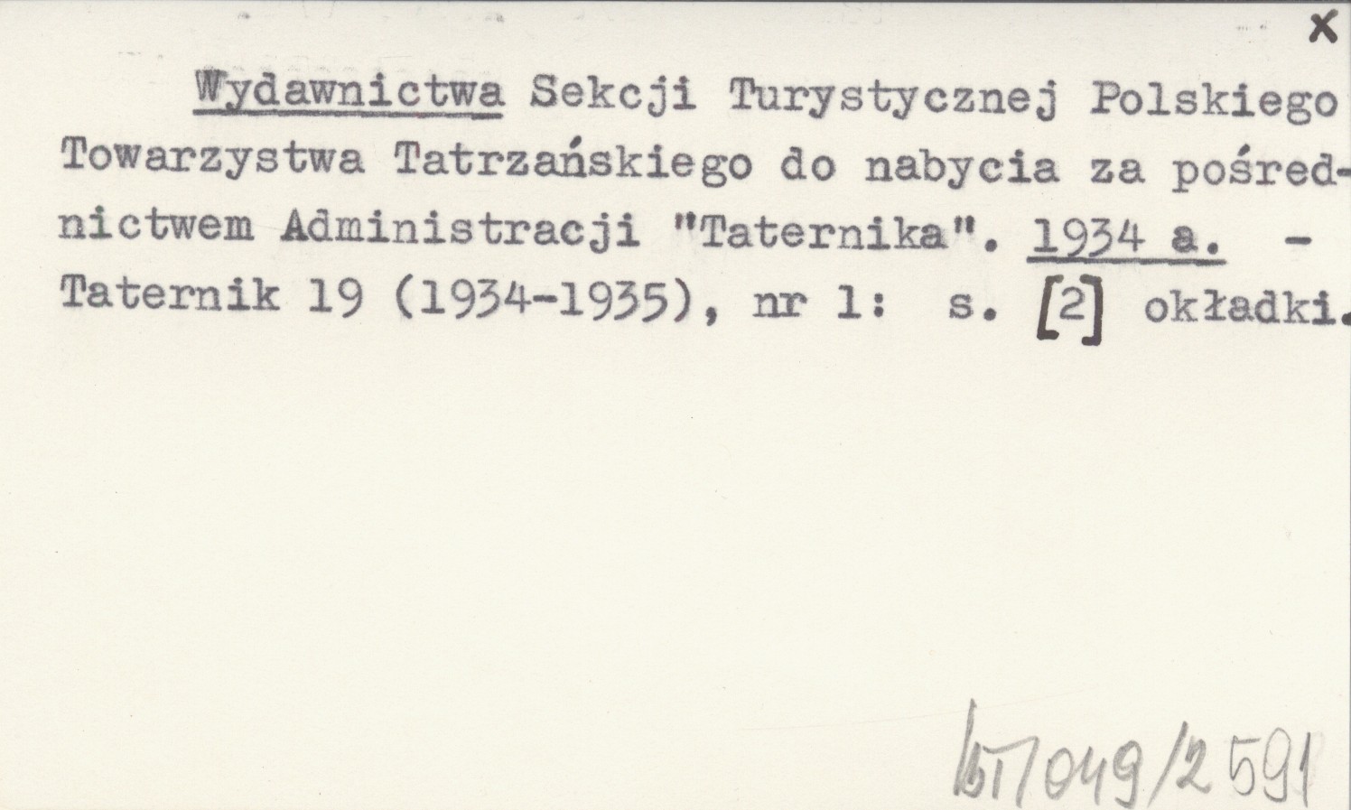 Wydawnictwa Sekcji Turystycznej Polskiego Towarzystwa Tatrzańskiego do nabycia za pośrednictwem Administracji "Taternika". 1934 a