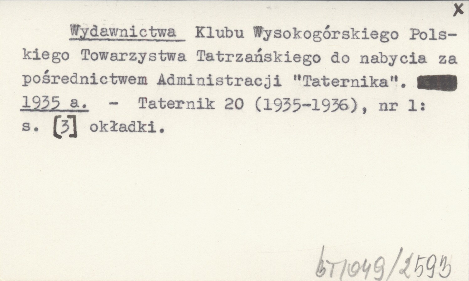 Wydawnictwa Klubu Wysokogórskiego Polskiego Towarzystwa Tatrzańskiego do nabycia za pośrednictwem Administracji "Taternika". 1935 a