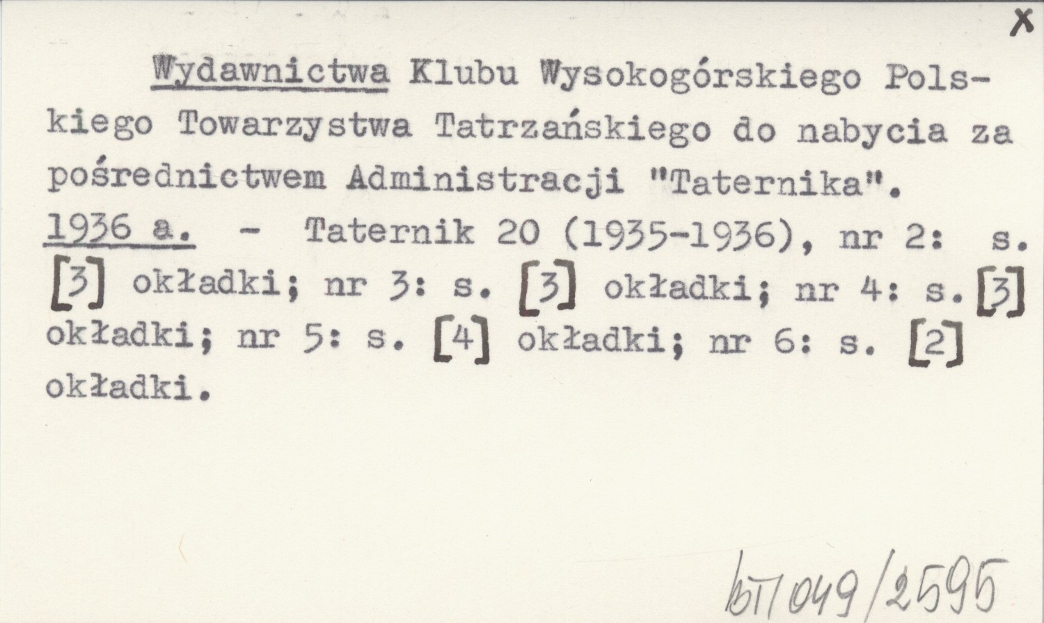 Wydawnictwa Klubu Wysokogórskiego Polskiego Towarzystwa Tatrzańskiego do nabycia za pośrednictwem Administracji "Taternika". 1936 a