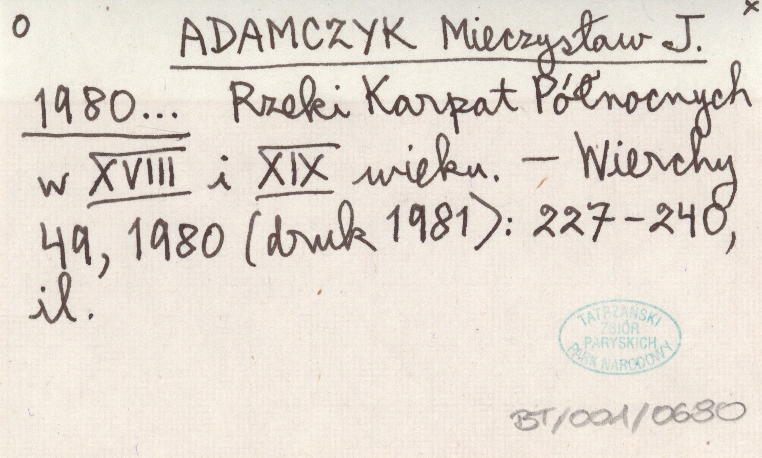 ADAMCZYK Mieczysław J. 1980... Rzeki Karpat Północnych w XVIII i XIX wieku.