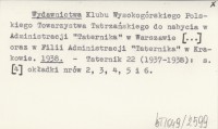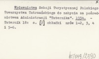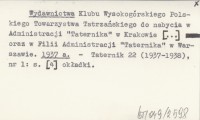 Wydawnictwa Klubu Wysokogórskiego Polskiego Towarzystwa Tatrzańskiego do nabycia w Administracji "Taternika" w Warszawie [...] oraz w Filii Administracji "Taternika" w Krakowie. 1938