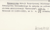 Wydawnictwa Klubu Wysokogórskiego Polskiego Towarzystwa Tatrzańskiego do nabycia w Administracji "Taternika" w Krakowie [...] oraz w Filii Administracji "Taternika" w Warszawie. 1936 b