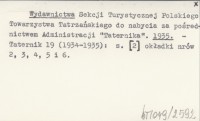 Wydawnictwa Klubu Wysokogórskiego Polskiego Towarzystwa Tatrzańskiego do nabycia za pośrednictwem Administracji "Taternika". 1935 a