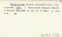 Wydawnictwa Muzeum Tatrzańskiego w Zakopanem. 1936