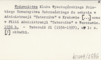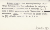 Wydawnictwa Klubu Wysokogórskiego Polskiego Towarzystwa Tatrzańskiego do nabycia w Administracji "Taternika" w Krakowie [...] oraz w Filii Administracji "Taternika" w Warszawie. 1937 a