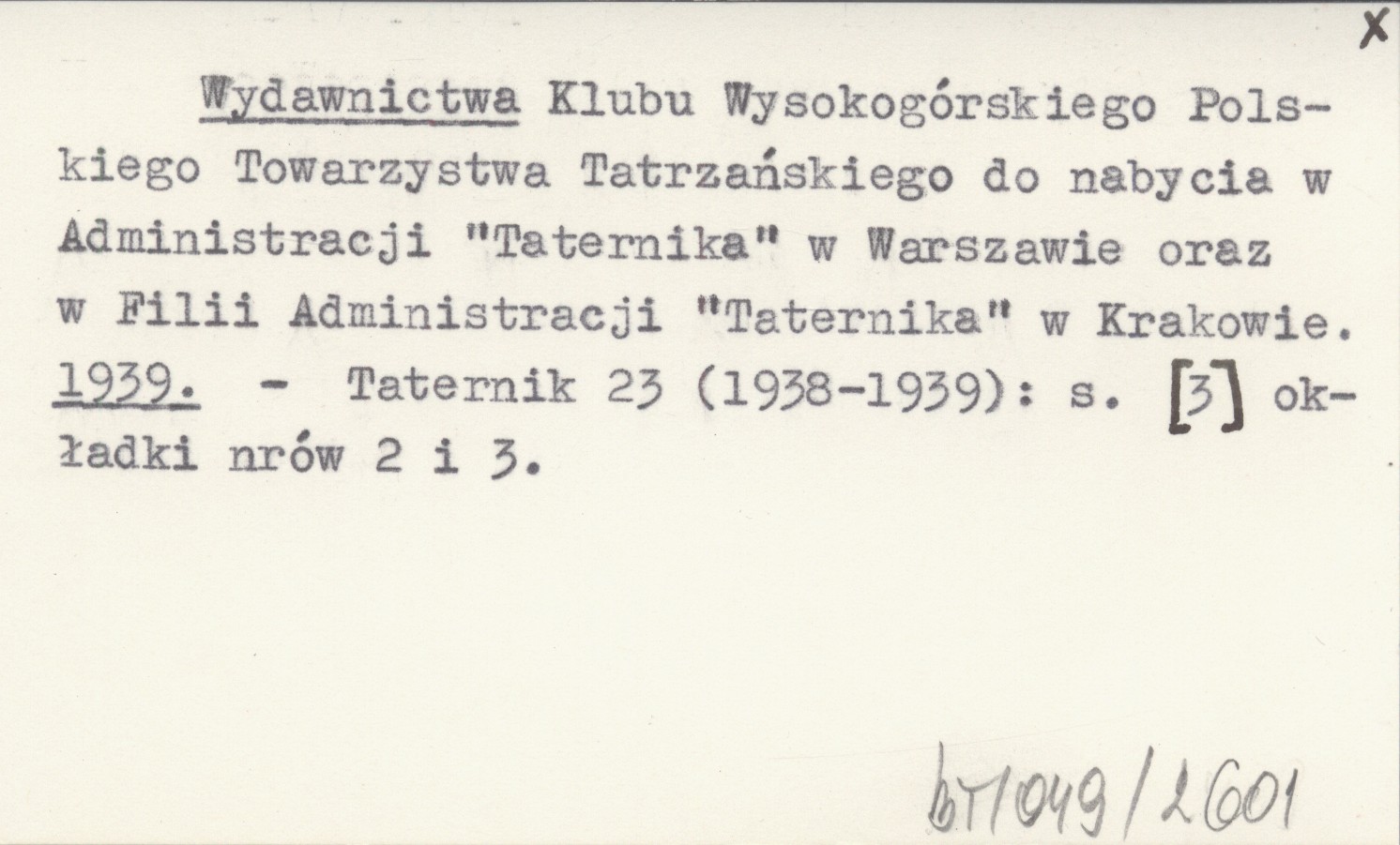 Wydawnictwa Klubu Wysokogórskiego Polskiego Towarzystwa Tatrzańskiego do nabycia w Administracji "Taternika" w Warszawie oraz w Filii Administracji "Taternika" w Krakowie. 1939