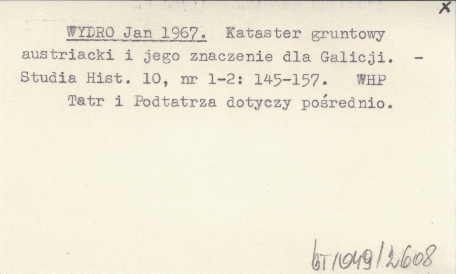 WYDRO Jan 1967 Kataster gruntowy austriacki i jego znaczenie dla Galicji.